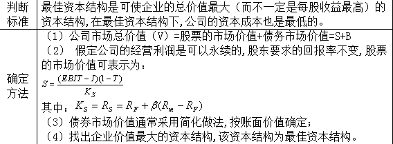 該種方法判斷資本結(jié)構(gòu)是否合理,是通過分析每股收益的變化來衡量。能提高每股收益的資本結(jié)構(gòu)是合理的,反之則不夠合理。