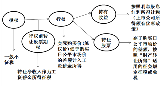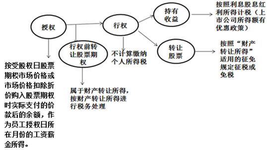41、【不可公開(kāi)交易】如果取得不可公開(kāi)交易的股票期權(quán),各個(gè)階段納稅情況如下所示(取自劉穎老師稅法輕1第390頁(yè)。)