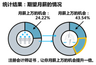 大多數(shù)考生朋友都會有這樣的疑問,注冊會計師證書真的能提升薪酬嗎?對于已經(jīng)在一線城市打拼了幾年,已經(jīng)有工作經(jīng)驗的考生來說,月薪過萬已經(jīng)是比較容易的事情了。但是很多注會的考生朋友們,都是處于事業(yè)剛剛起步的階段,月薪過萬是職業(yè)生涯需要越過的一道坎,而注冊會計師證書絕對是一個助你跨過這道坎兒的不二之選哦。小編在這里引用鄭曉博老師調查采集到的數(shù)據(jù),用數(shù)據(jù)說話,請大家看下面的圖: