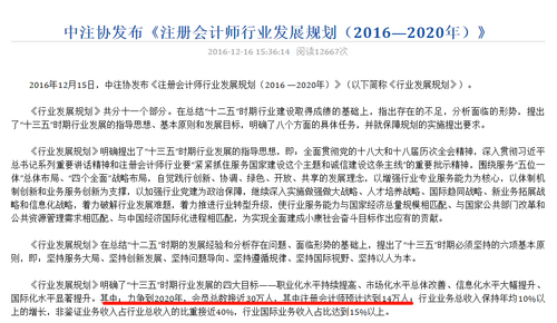 對(duì)于《注冊(cè)會(huì)計(jì)師行業(yè)發(fā)展規(guī)劃》相信很多考生早就有所耳聞,它明確了“十三五”時(shí)期行業(yè)發(fā)展的四大目標(biāo)之一,就是職業(yè)化水平持續(xù)提高。其中,力爭(zhēng)到2020年會(huì)員總數(shù)接近30萬(wàn)人,其中注冊(cè)會(huì)計(jì)師預(yù)計(jì)達(dá)到14萬(wàn)人。