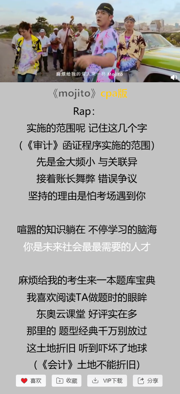 CPA版《mojito》,朗朗上口都是知識(shí)點(diǎn)
