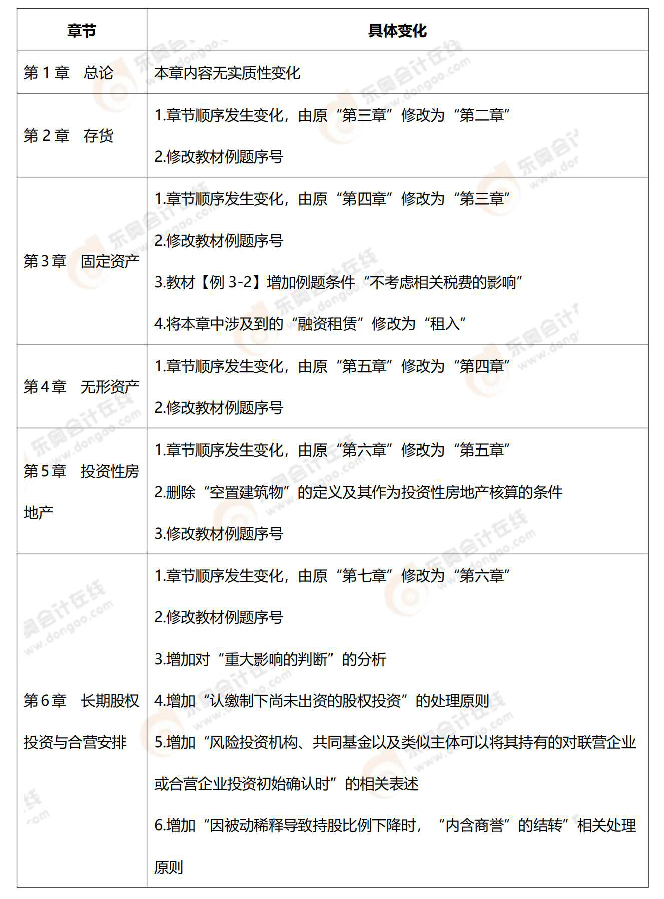 《會計》變化約30%,部分知識點(diǎn)增加或刪減合并,變化較為瑣碎。好消息是章節(jié)順序進(jìn)行調(diào)整,壞消息是變動主要集中在大章節(jié),例如長期股權(quán)投資、收入、合并財務(wù)報表等。