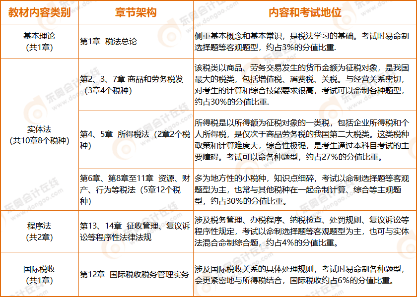 注會(huì)稅法章節(jié)架構(gòu)及考試地位