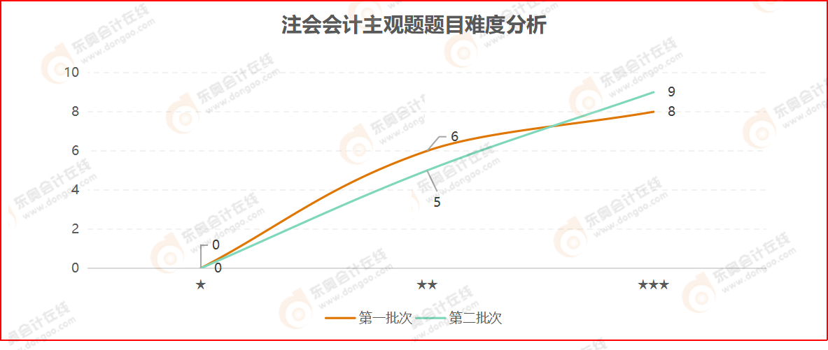 無論是第一批次考試還是第二批次考試,主觀題分數(shù)都是50分,從2021年注會會計考試的考題數(shù)據(jù)來看,主觀題考點集中在2星和3星難度,考試難度較大,建議考生盡早復習,夯實基礎(chǔ),為后期備考做好準備。