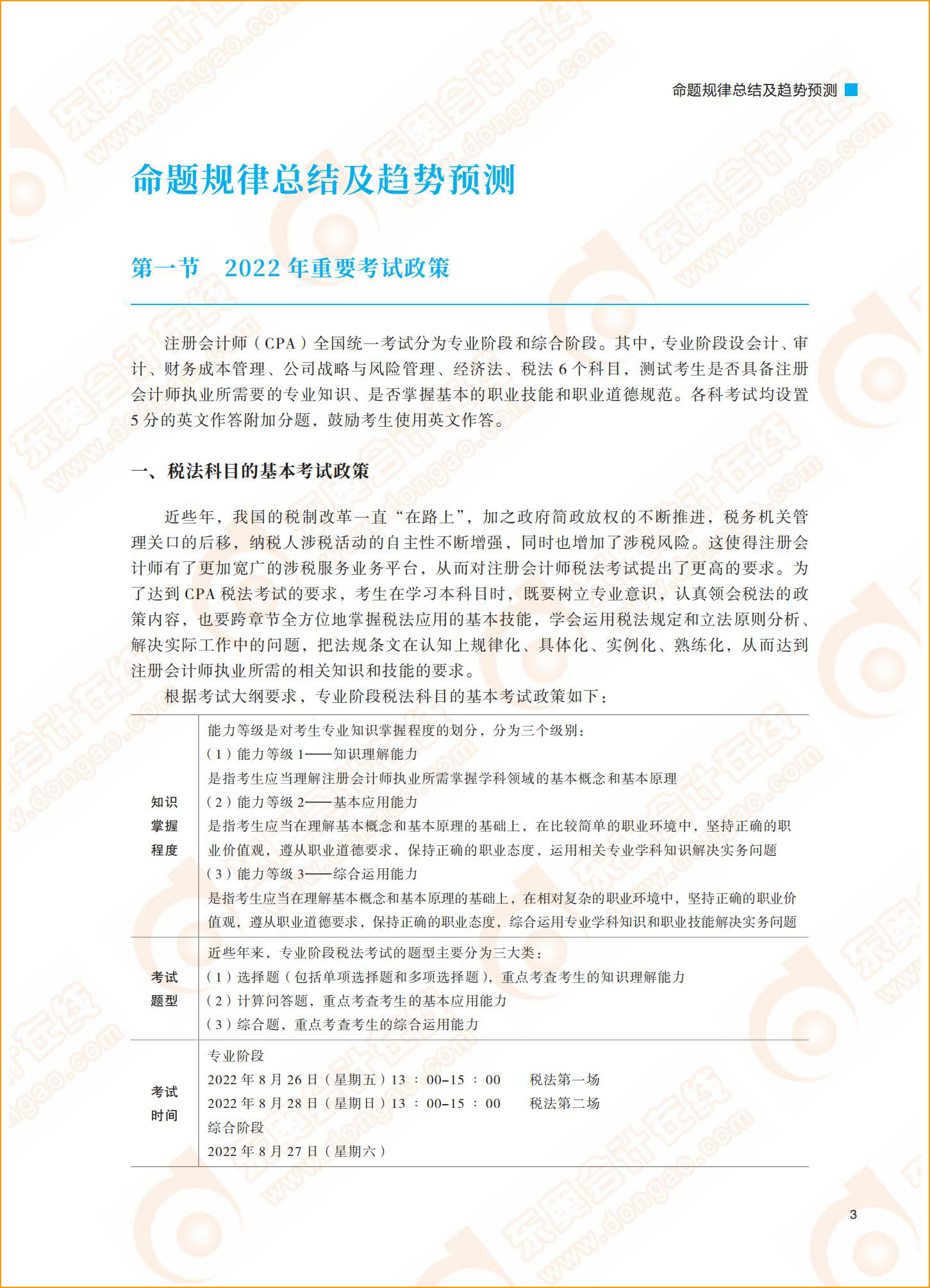 以上就是2022年注冊(cè)會(huì)計(jì)師考試考情分析及命題趨勢(shì)預(yù)測(cè)的全部?jī)?nèi)容,希望能夠讓大家更加了解注冊(cè)會(huì)計(jì)師考試,找到備考的突破口。2022年注冊(cè)會(huì)計(jì)師考試時(shí)間是8月26-28日,考試難度高,備考需趁早,預(yù)祝大家順利通過(guò)2022年注冊(cè)會(huì)計(jì)師考試。