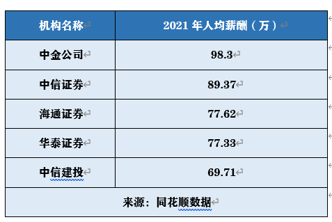 以上為2021年國內(nèi)頭部投行機構(gòu)的人均薪酬統(tǒng)計,不難看出,不同公司的薪酬差距較大。此外,外資投行的人均薪酬普遍高于本土投行,不過對人才的要求也會更高。放眼整個社會,投行確實是俯瞰大眾的高薪收入。