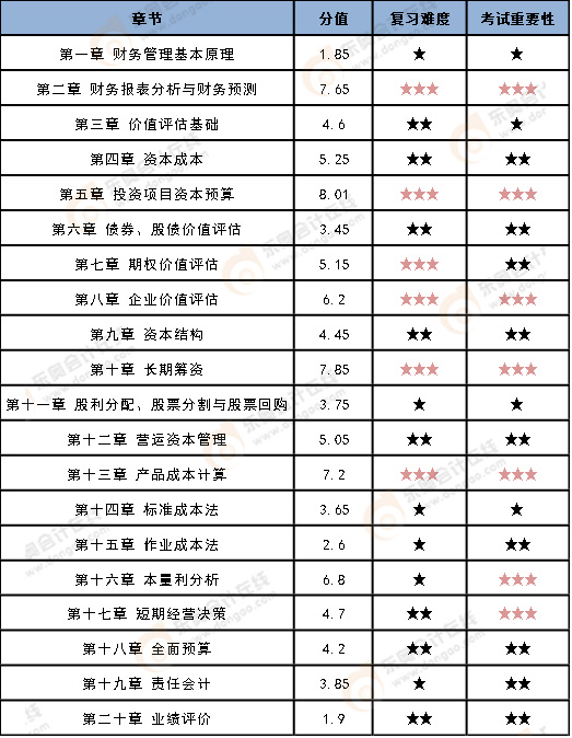 / 注會(huì)財(cái)管各章節(jié)考試重要性及備考難度 /