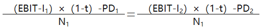 每股收益無差別點是息稅前利潤EBIT的一個特定取值。在這個取值時,兩種融資方案的每股收益相等。