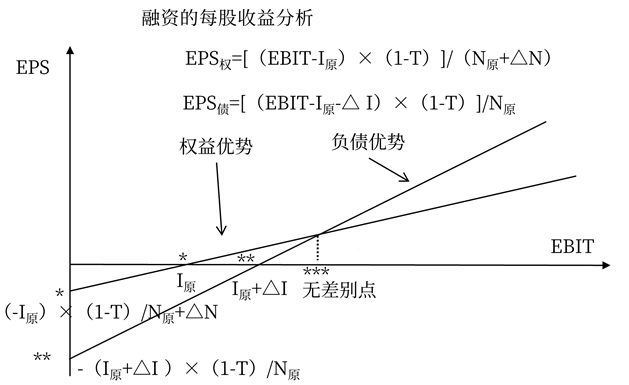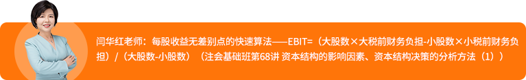 (2)每股收益無差別點:令兩個方案EPS相等的息稅前利潤EBIT,或其他參數(shù)(如收入、銷量等)。