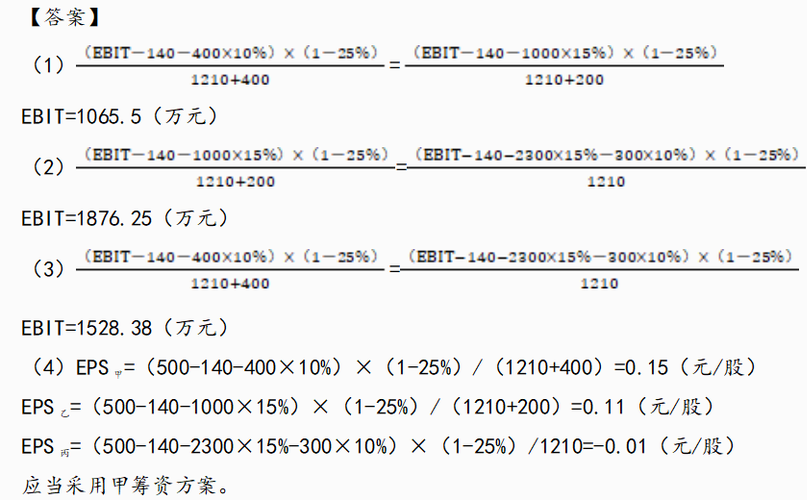 (1)計算各方案的每股收益(EPS),選擇EPS最高的;