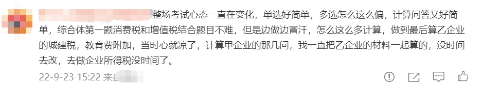 2022注冊會計師延考稅法科目第一場已經結束了,同學們感覺怎么樣,下面是東奧會計在線為同學們整理的考生反饋,來看看吧。