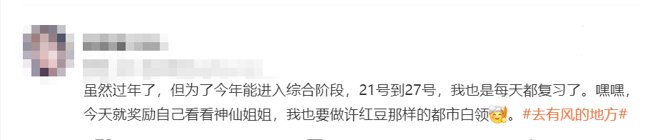 2023年1月初,由劉亦菲和李現(xiàn)主演的都市劇《去有風的地方》,一經(jīng)播出熱度就不斷升高,連續(xù)獲得了衛(wèi)視直播關注度日冠,貓眼電視劇熱播榜日冠。有的人跟隨鏡頭與男女主一同領略蒼山洱海、石林古城的迷人。有的人與許紅豆的拼搏向上產生深刻的共鳴,仿佛在劇中看到了自己的影子,而在這些人中出現(xiàn)了備考注冊會計師考試的女生。
