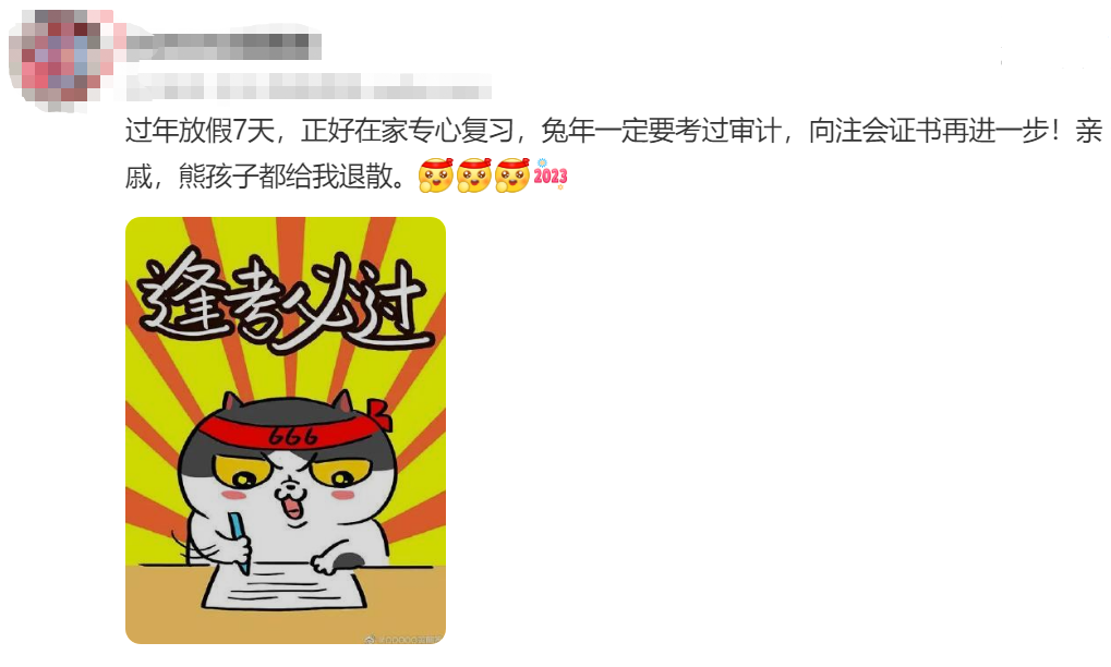 但即便是再累、再苦、再煩,依舊有很多注會女生下定了決心,開始進行這場磨煉心態(tài)、意志和身體的“備戰(zhàn)”。更有甚者,在春節(jié)期間也沒有放下注會考試,抓緊了一切時間復習。