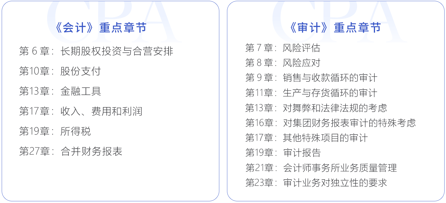 而對(duì)于重點(diǎn)難點(diǎn)內(nèi)容可以放緩聽課速度,便于理解記憶吸收。下文為注會(huì)六科目的重點(diǎn)章節(jié),在學(xué)習(xí)這部分內(nèi)容時(shí)一定要集中精神哦!