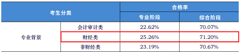 財(cái)經(jīng)類(lèi)專(zhuān)業(yè)背景的考生對(duì)于會(huì)計(jì)知識(shí)有深厚的了解,備考注會(huì)考試的難度就會(huì)低于其他專(zhuān)業(yè)的考生。所以,財(cái)經(jīng)類(lèi)專(zhuān)業(yè)背景的考生兩個(gè)階段考試的合格率均略高于其他類(lèi)別考生。