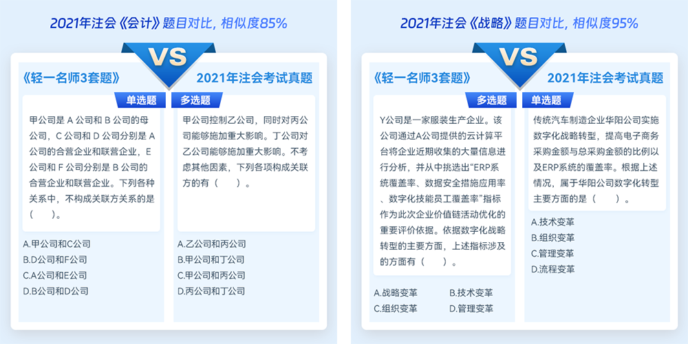 注會《輕一名師3套題》貼合考試大綱,題型覆蓋全面