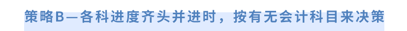 在各科進(jìn)度相差不多,整體推進(jìn)會(huì)導(dǎo)致都復(fù)習(xí)不好時(shí),我們就該從科目的重要性和注會(huì)考試整體安排上進(jìn)行考慮。這種情況,建議以是否報(bào)考會(huì)計(jì)為“決策標(biāo)準(zhǔn)”。