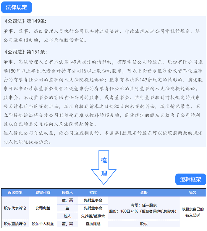 下圖以《公司法》第149條和第151條為例,進(jìn)行邏輯框架的梳理,僅供參考: