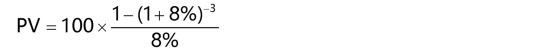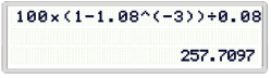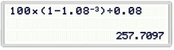 計算100×(1-(1+8%-5)÷8%=399.27
