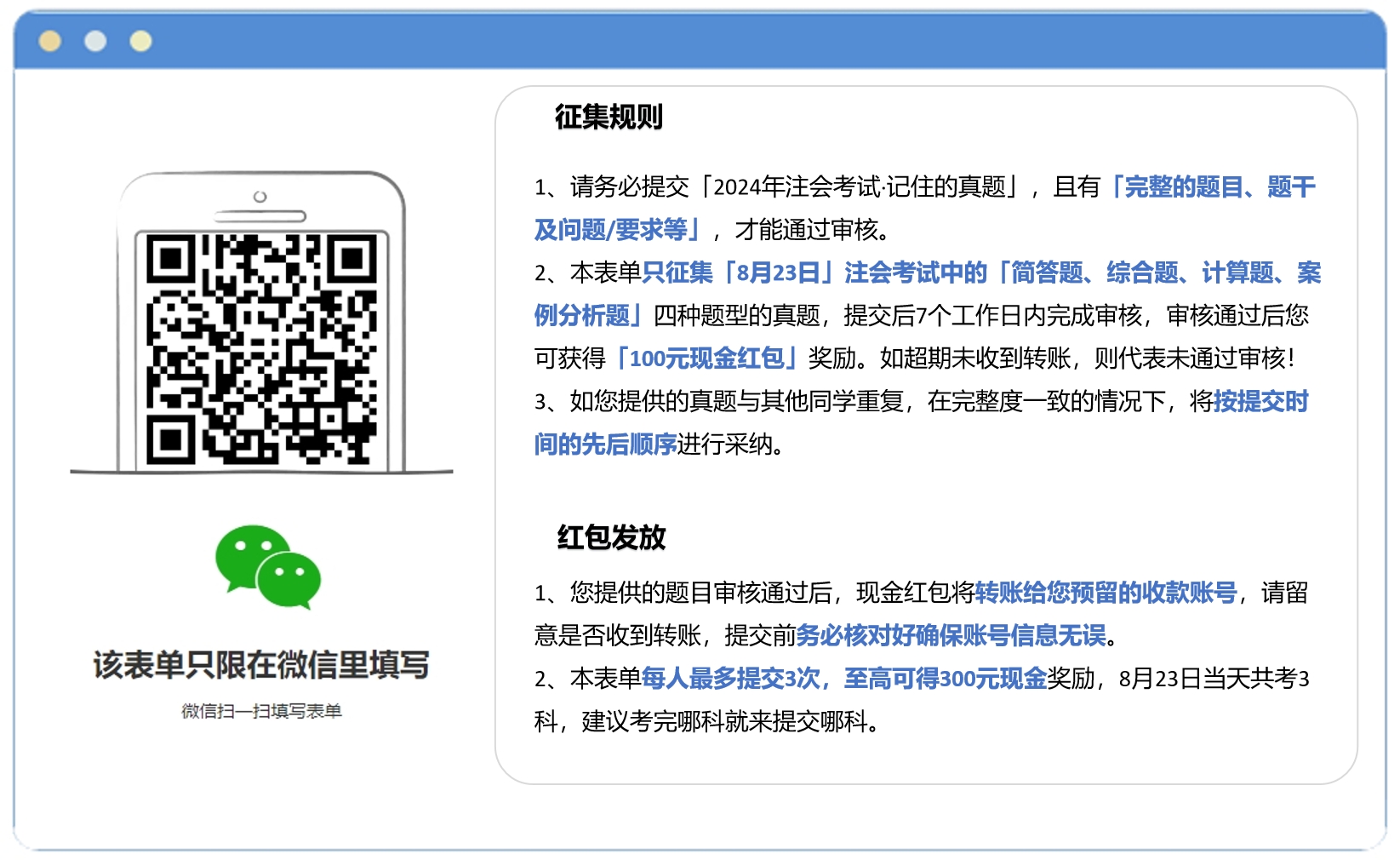 2024注會考試有獎?wù)黝}開始啦!掃碼參與讓“憶題”贏一次!