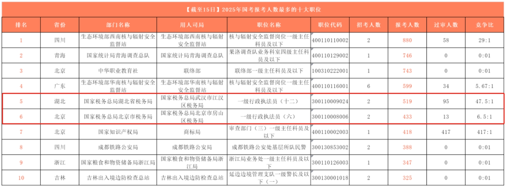 (2025國考競爭最激烈的十大職位,點(diǎn)擊看大圖)