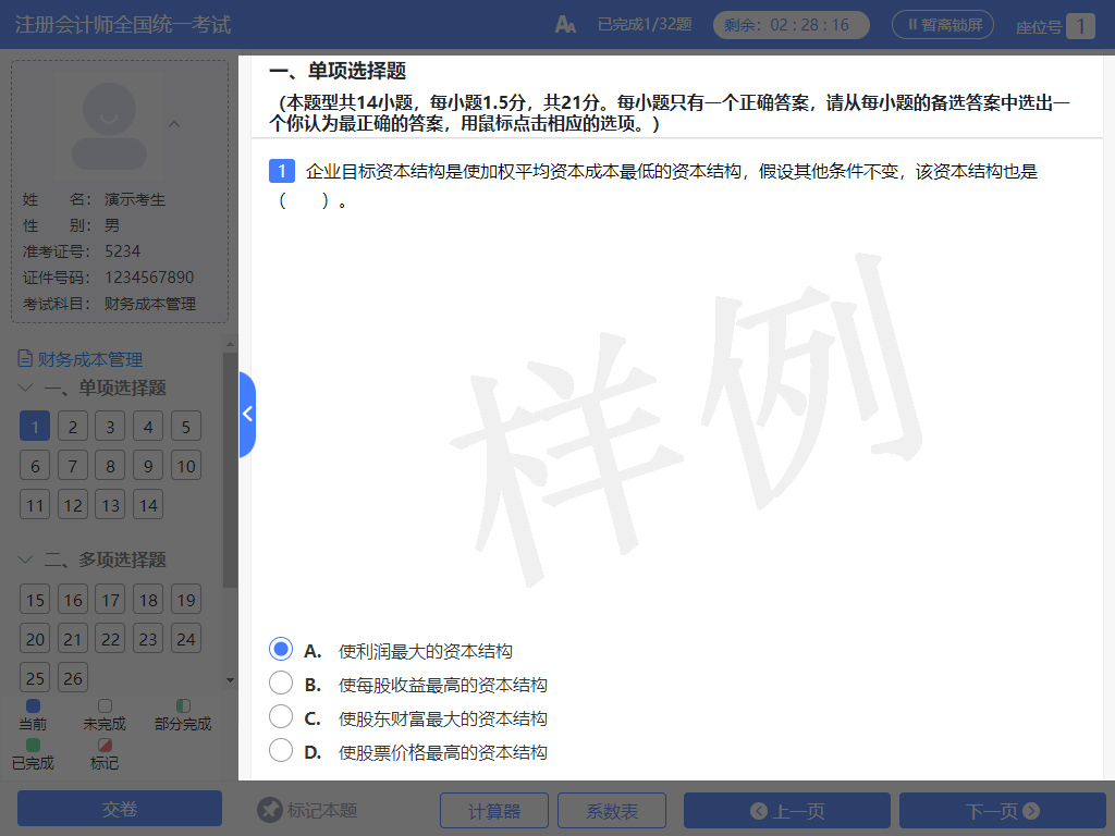 2025年注冊會計師考試機考模擬練習網(wǎng)站已開通,現(xiàn)階段考生們可以進入機考系統(tǒng),熟悉機考環(huán)境、試題類型和作答方式。下文整理了機考系統(tǒng)的操作指南,希望可以幫助考生快速了解機考界面、功能以及操作細節(jié)。此外,正式考試試卷的題型題量、分值分布和機考界面,可能會做適當調(diào)整,需要考生額外注意。點擊直達機考模擬練習網(wǎng)站>>
