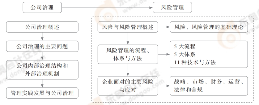 對于風險管理部分,約占總分值的30%,考生備考時應重點關注風險管理的流程、體系與方法(第七章)和企業(yè)面對的主要風險與應對(第八章)。另外,公司治理(第五章)具備主觀題的考核價值,也需適當關注。