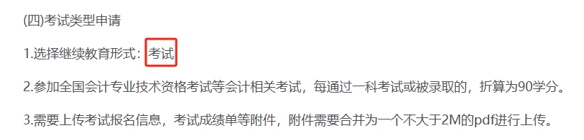 注會(huì)考生注意!申請(qǐng)過程中,系統(tǒng)要求選擇“考試”作為繼續(xù)教育形式。接著需要上傳相關(guān)證明文件,通常包括考試報(bào)名信息和成績(jī)單。所有文件需要合并為一個(gè)大小不超過2MB的PDF文檔。