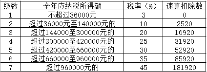 應(yīng)納稅所得額=年度收入總額-60000元-“三險(xiǎn)一金”等專項(xiàng)扣除-子女教育等專項(xiàng)附加扣除-依法確定的其他扣除+全年一次性獎(jiǎng)金收入)