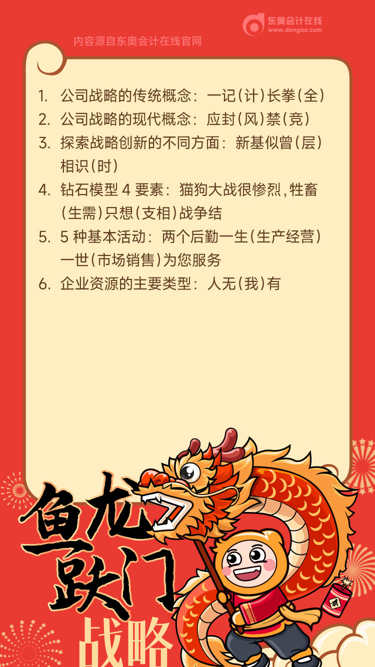 東奧會(huì)計(jì)在線,在新年里將注會(huì)各科記憶碎片,提煉設(shè)計(jì),以新春福袋的形式,為同學(xué)們送去助考福氣。注會(huì)《戰(zhàn)略》知識(shí)壁紙,快來領(lǐng)取吧。