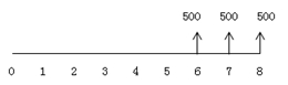 【解析】本題總期限為8年,前5年無流入,后3年每年年末流入500萬元,也就是時(shí)點(diǎn)軸上的6、7、8時(shí)點(diǎn)均有500萬元的流入,用500×(P/A,8%,3)將后3年的現(xiàn)金流入折現(xiàn)到時(shí)間軸上的5時(shí)點(diǎn),從5時(shí)點(diǎn)折現(xiàn)到0時(shí)點(diǎn)還需再乘以5期的復(fù)利現(xiàn)值系數(shù),即P0=500×(P/A,8%,3)×(P/F,8%,5)=876.99(萬元)。