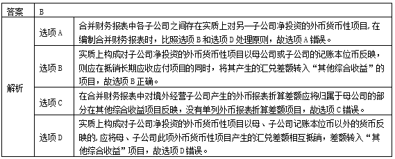A.合并財(cái)務(wù)報(bào)表中各子公司之間存在實(shí)質(zhì)上構(gòu)成對(duì)另一子公司凈投資的外幣貨幣性項(xiàng)目,其產(chǎn)生的匯兌差額應(yīng)由少數(shù)股東承擔(dān)