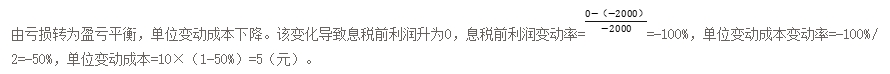 某公司只生產(chǎn)一種產(chǎn)品,目前息稅前利潤為-2000萬元,單位變動成本為10元,息稅前利潤對單位變動成本的敏感系數(shù)為2。假設(shè)其他條件不變,該公司盈虧平衡時的單位變動成本為( ?。┰?/p>