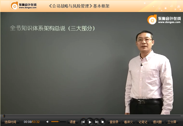 以下是東奧名師呂鵬2013年注冊會計師考試基礎(chǔ)班免費課件:《公司戰(zhàn)略與風(fēng)險管理》基本框架免費試聽課程: