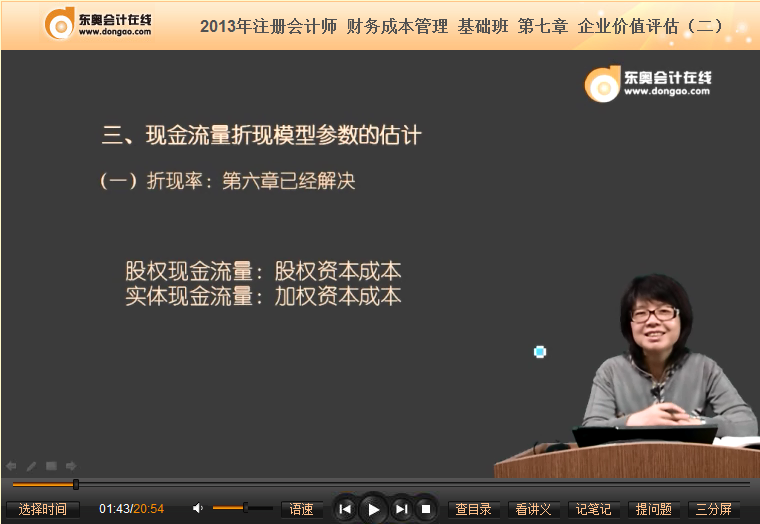 閆華紅免費(fèi)視頻:2013《財(cái)管》之現(xiàn)金流量折現(xiàn)模型參數(shù)的估計(jì)