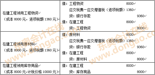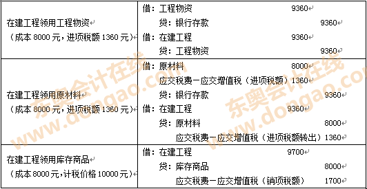(2)在建工程領(lǐng)用工程物資時(shí):