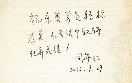 【東奧小編】親愛的2015年注會考生們,在這金秋時節(jié),我們即將迎來一年一度的全國注冊會計師專業(yè)階段考試!東奧注會名師們在考試來臨之際,為考生們送上最誠摯的祝福,放開往日學(xué)習(xí)中的緊張,用一顆平常心去輕松面對,讓我們帶著名師的祝福和滿滿的自信,勇敢踏上考場!