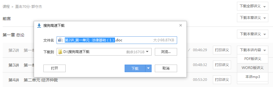 ④每個(gè)選擇模塊,均提供PDF版本講義下載和WORD版本講義下載,學(xué)員可根據(jù)需要進(jìn)行選擇(此處以講次講義為例);