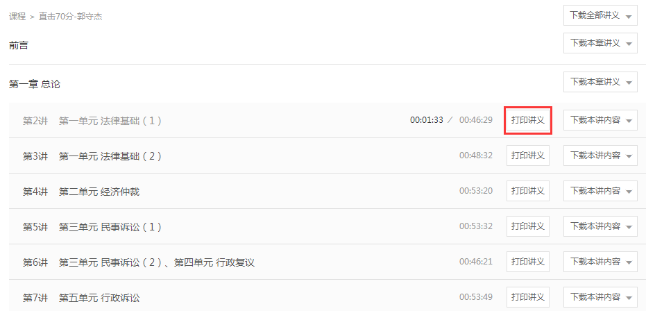 ③進(jìn)入課程后,學(xué)員可根據(jù)自己的需要,選擇【下載全部講義】、【下載本章講義】、【下載本講內(nèi)容】講義;