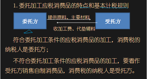 ①購(gòu)買材料涉及增值稅進(jìn)項(xiàng)稅 ②支付加工費(fèi)涉及增值稅進(jìn)項(xiàng)稅 ③視同自產(chǎn)消費(fèi)品應(yīng)繳消費(fèi)稅 |