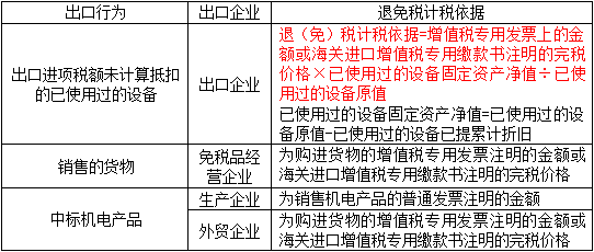 2014《稅法》基礎考點:增值稅退(免)稅的計稅依據(jù)