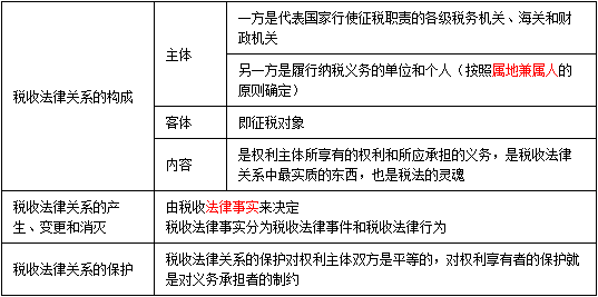 稅收法律關系包括三方面內(nèi)容:稅收法律關系的構成;稅收法律關系的產(chǎn)生、變更與消滅;稅收法律關系的保護。