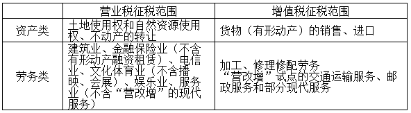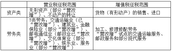 2014年1月1日起,營業(yè)稅與增值稅的具體征稅范圍:
