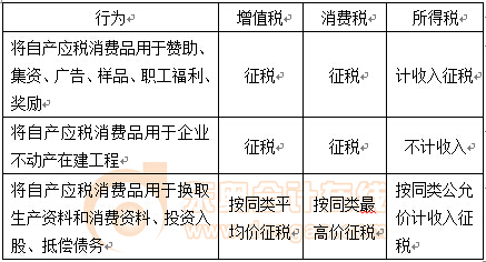 【相關(guān)鏈接】所得稅與增值稅、消費(fèi)稅等流轉(zhuǎn)稅的視同銷售規(guī)則是存在差別的。將自產(chǎn)貨物用于企業(yè)內(nèi)部行為,諸如在建工程、管理部門、分公司,流轉(zhuǎn)稅作視同銷售處理但是所得稅不視同銷售。