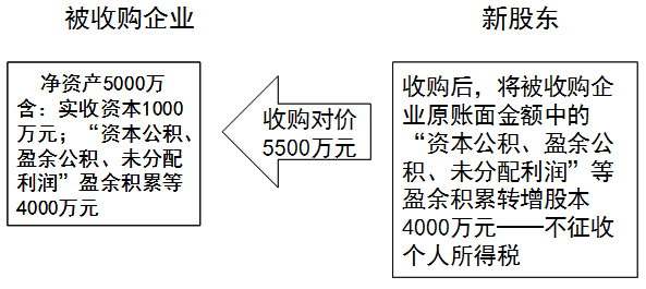 在股權(quán)交易時(shí)將“資本公積、盈余公積、未分配利潤(rùn)”等一并計(jì)入股權(quán)轉(zhuǎn)讓價(jià)格,并繳納了所得稅,對(duì)于盈余積累已轉(zhuǎn)化為原股東的股權(quán)轉(zhuǎn)讓所得計(jì)稅,支付對(duì)價(jià)的新股東對(duì)已支付對(duì)價(jià)取得的股息紅利轉(zhuǎn)增資本(股本),不征收個(gè)人所得稅 |