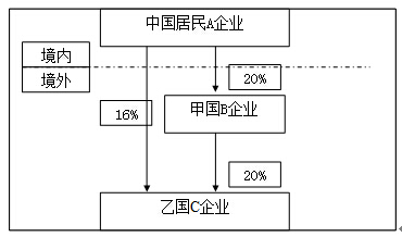 中國居民A企業(yè)直接持有甲國B企業(yè)20%股份,直接持有乙國C企業(yè)16%股份,并且B企業(yè)直接持有C企業(yè)20%股份,如下圖所示: