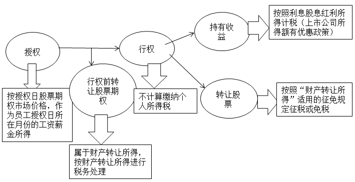 為了方便理解,對于股票期權(quán)的涉稅情況圖示如下:
