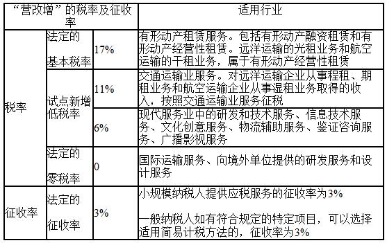 知識點:營改增的稅率
