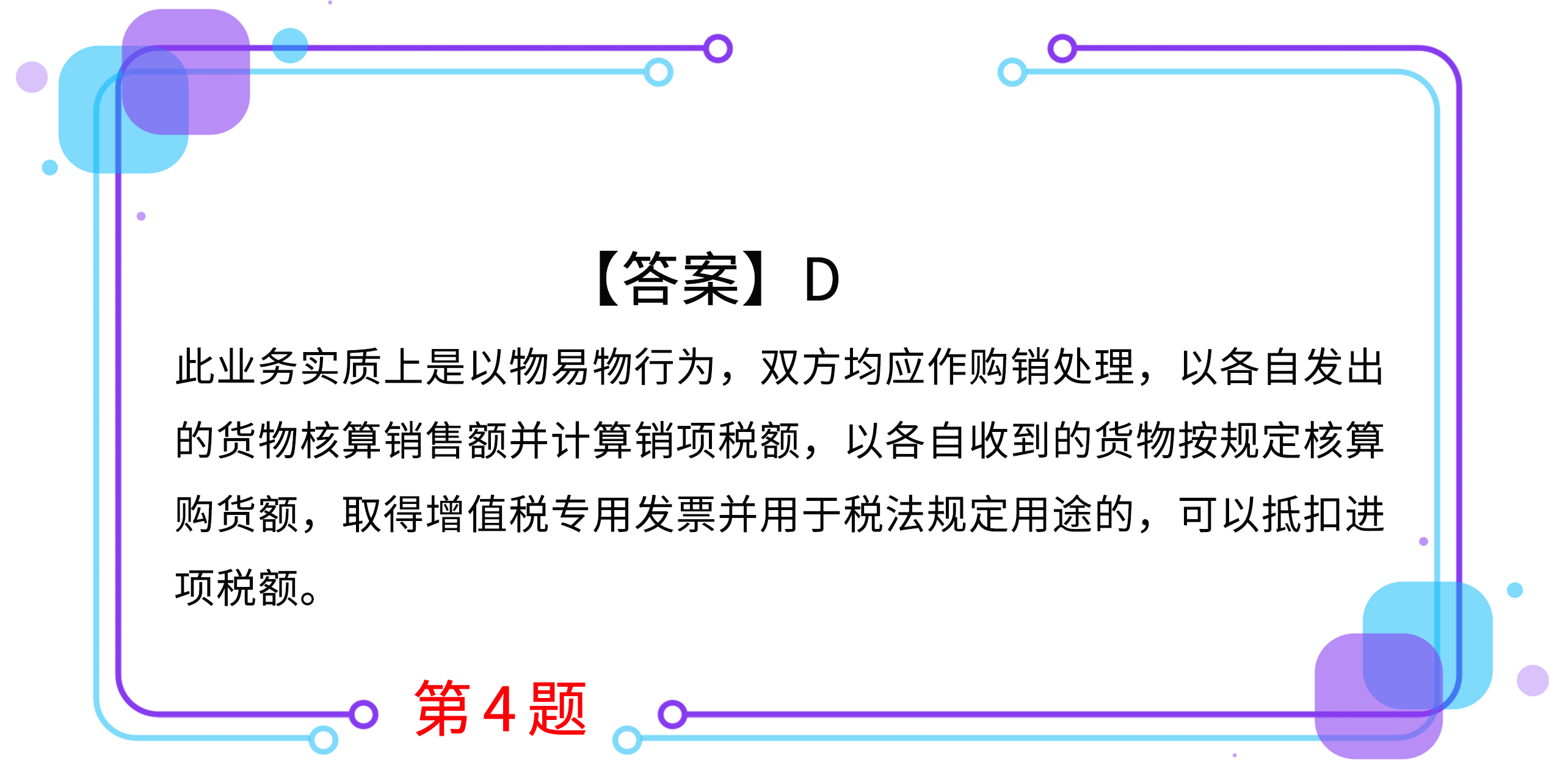D.甲、乙雙方都應(yīng)作購銷處理,可互開增值稅專用發(fā)票,分別核算銷售額和購進額,分別計算銷項稅額和進項稅額