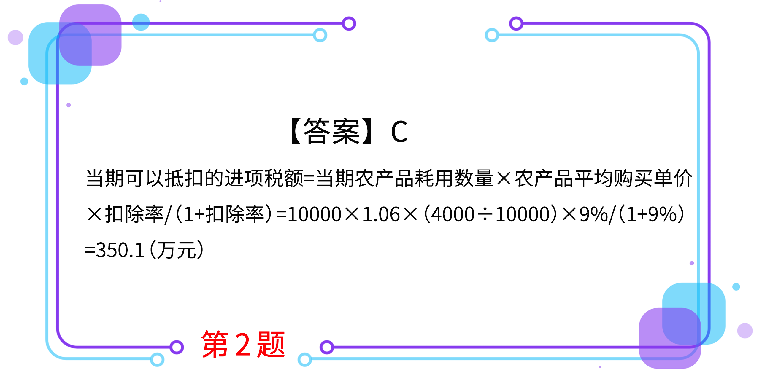 2.某公司為增值稅一般納稅人,其農(nóng)產(chǎn)品實行增值稅進項稅額核定扣除辦法,2019年12月1日~12月31日銷售10000噸巴氏殺菌乳,原乳單耗數(shù)量為1.06噸,原乳平均購買單價為4000元/噸。在采用投入產(chǎn)出法的情況下,當期可以抵扣的進項稅額是(      )萬元。